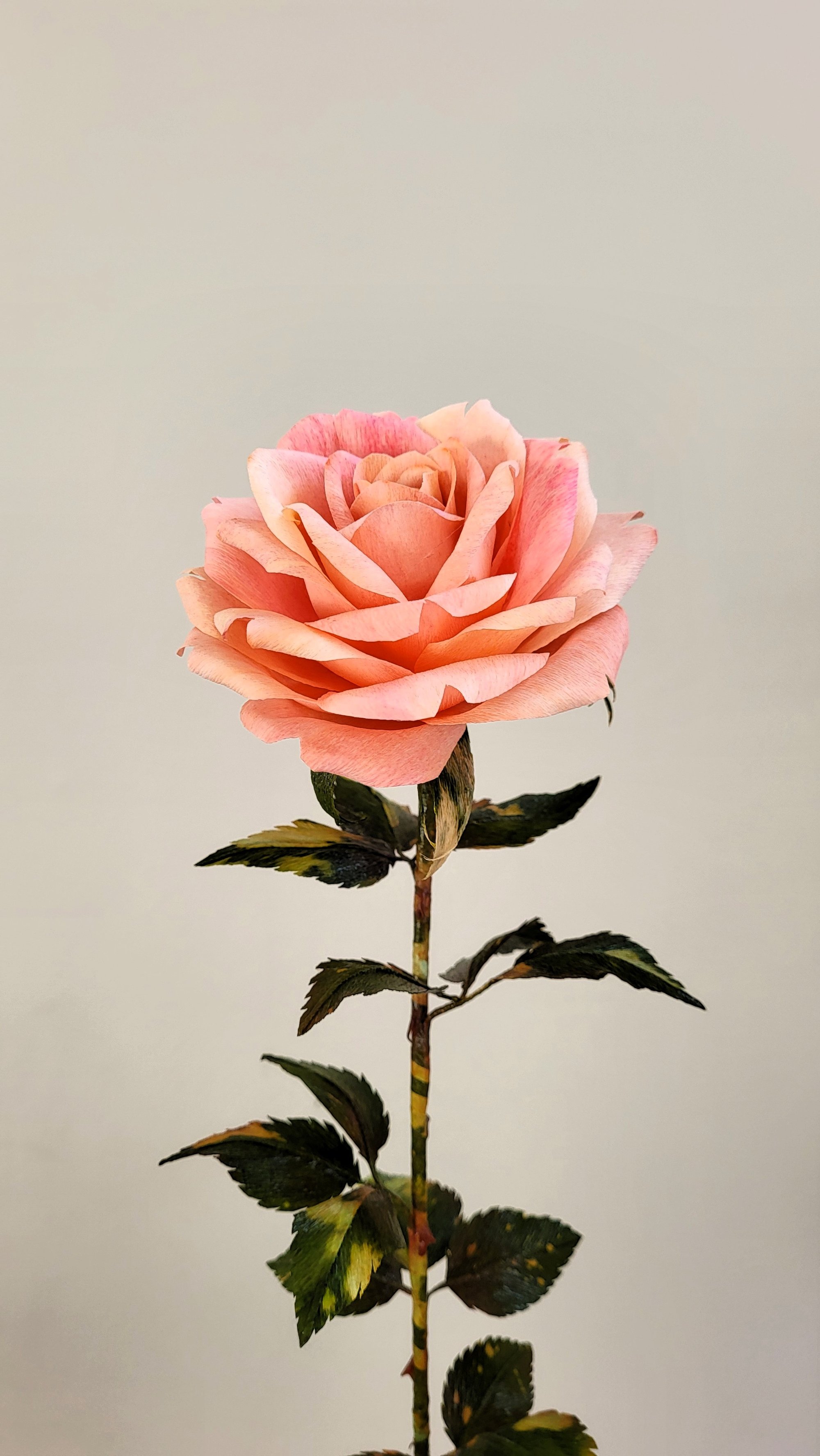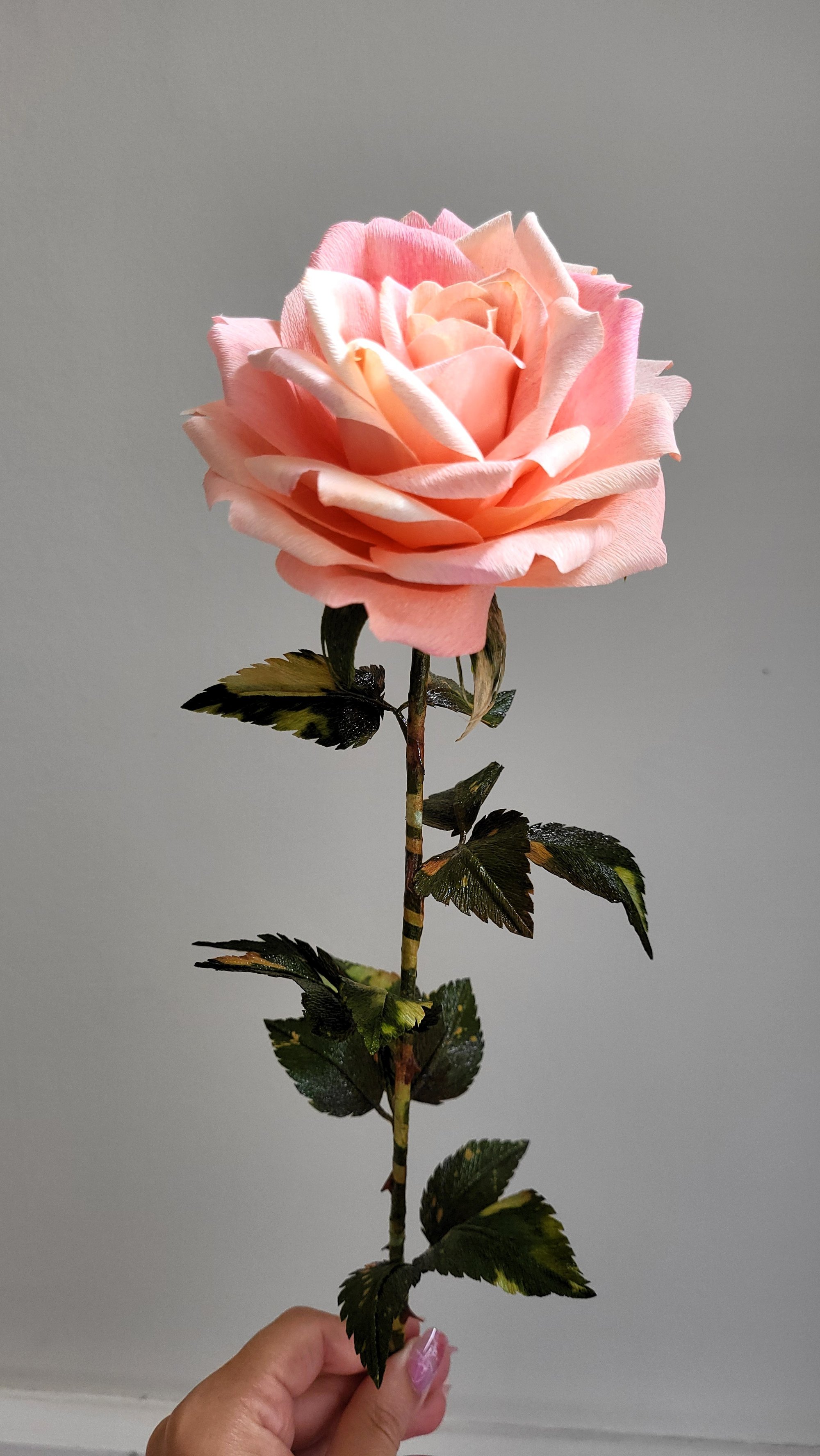 Bring timeless beauty into your space with this handcrafted paper rose, meticulously shaped petal-by-petal to capture the elegance of a real bloom. Featuring soft peach tones and delicate, lifelike details, this rose makes a perfect gift or a charming décor piece that never wilts.